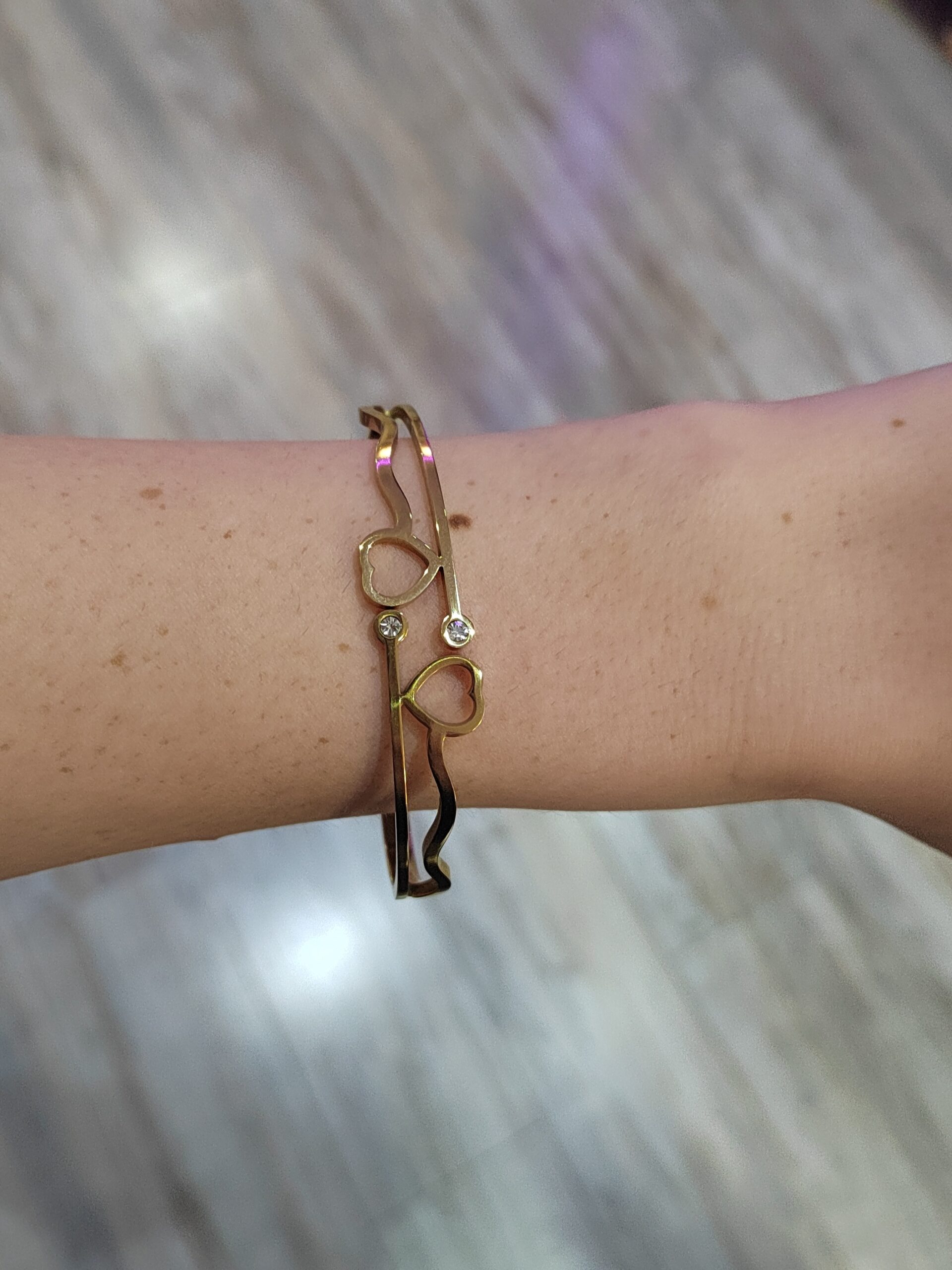 Lovely little clasp bangle bracelet with cute heart design and diamantes