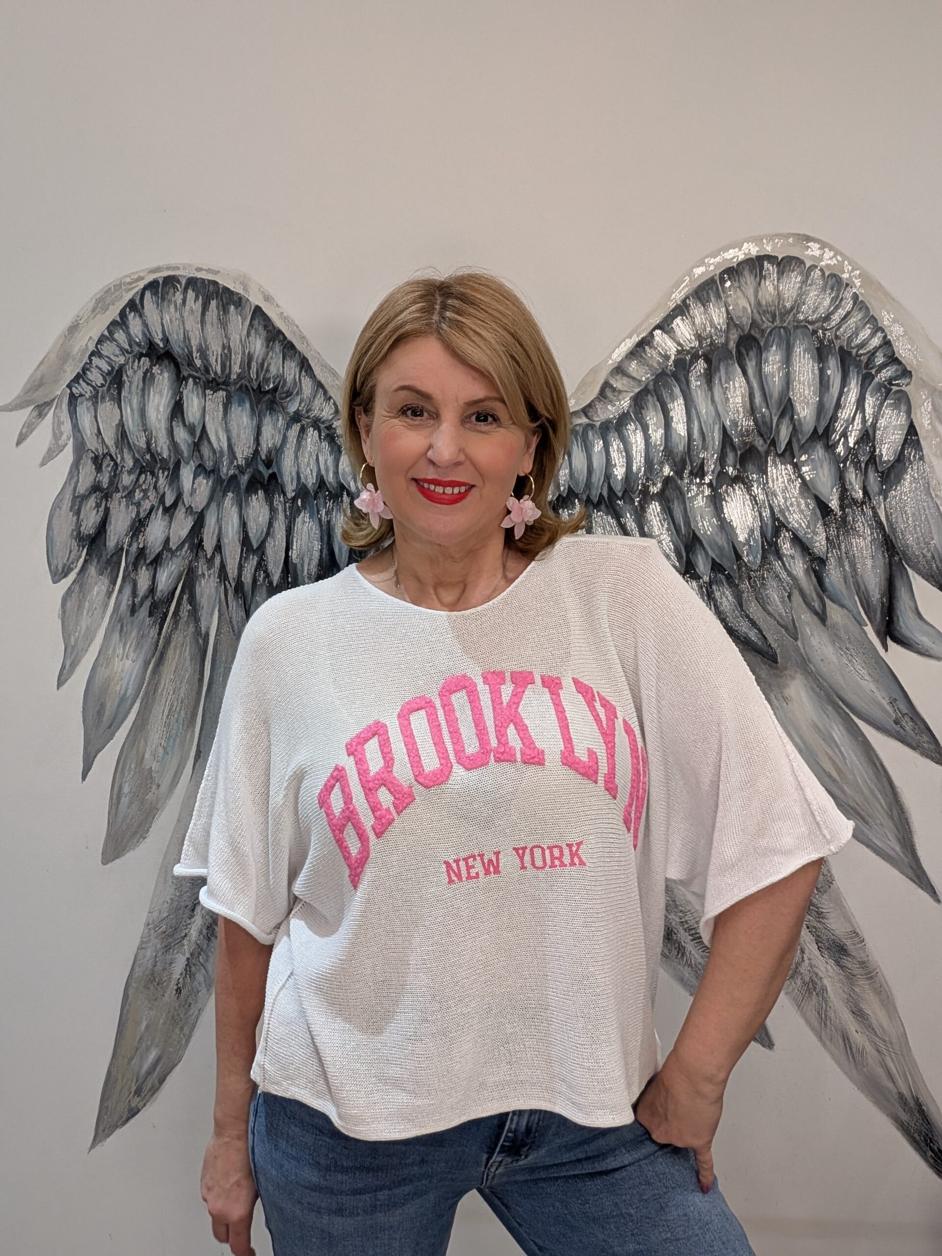 Our Gorgeous Brooklyn light weight knit Top looks great with jeans or joggers perfect addition to your spring wardrobe
