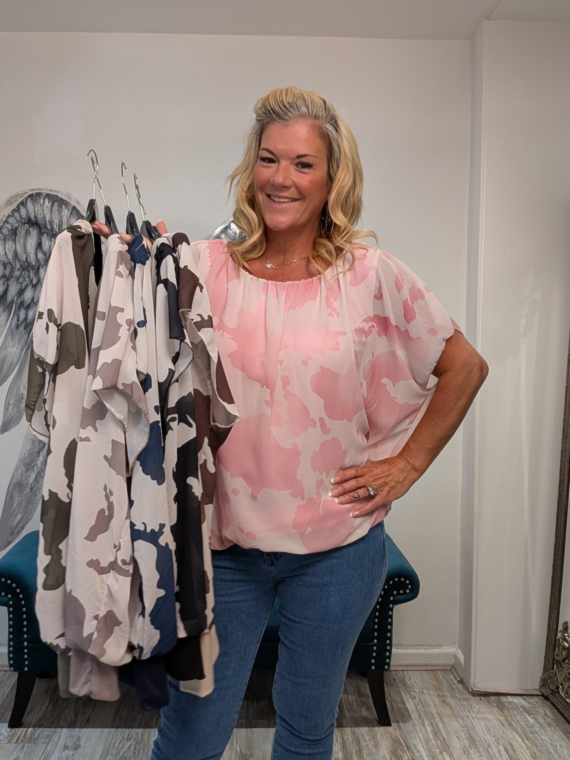 Gorgeous animal print top in various colours with elasticated neck line for the option top wear in a few ways.