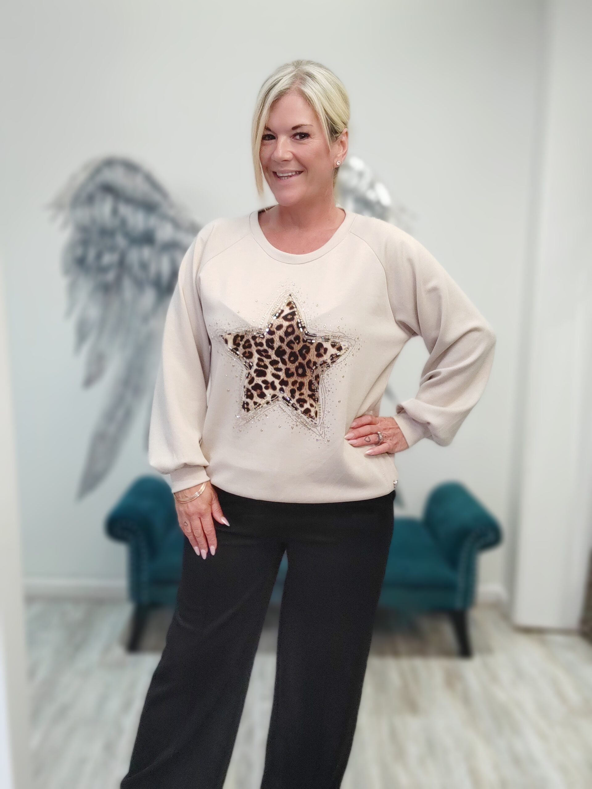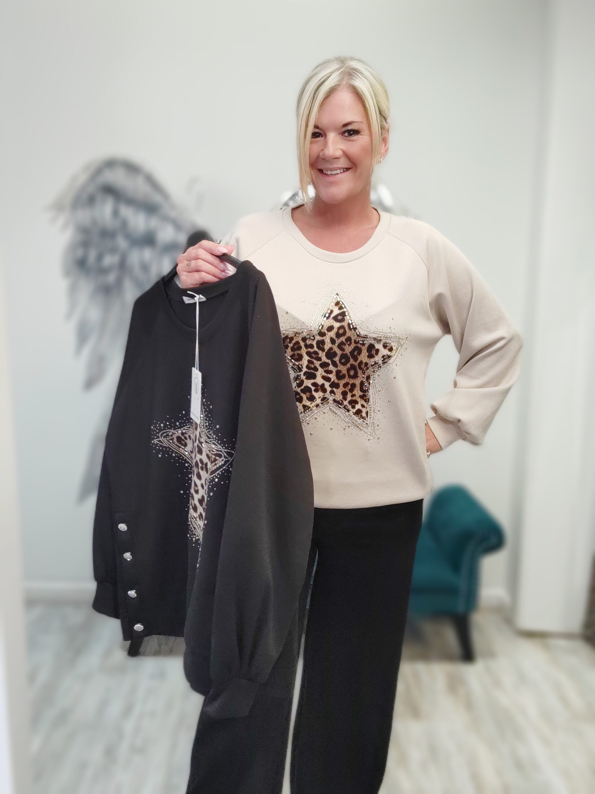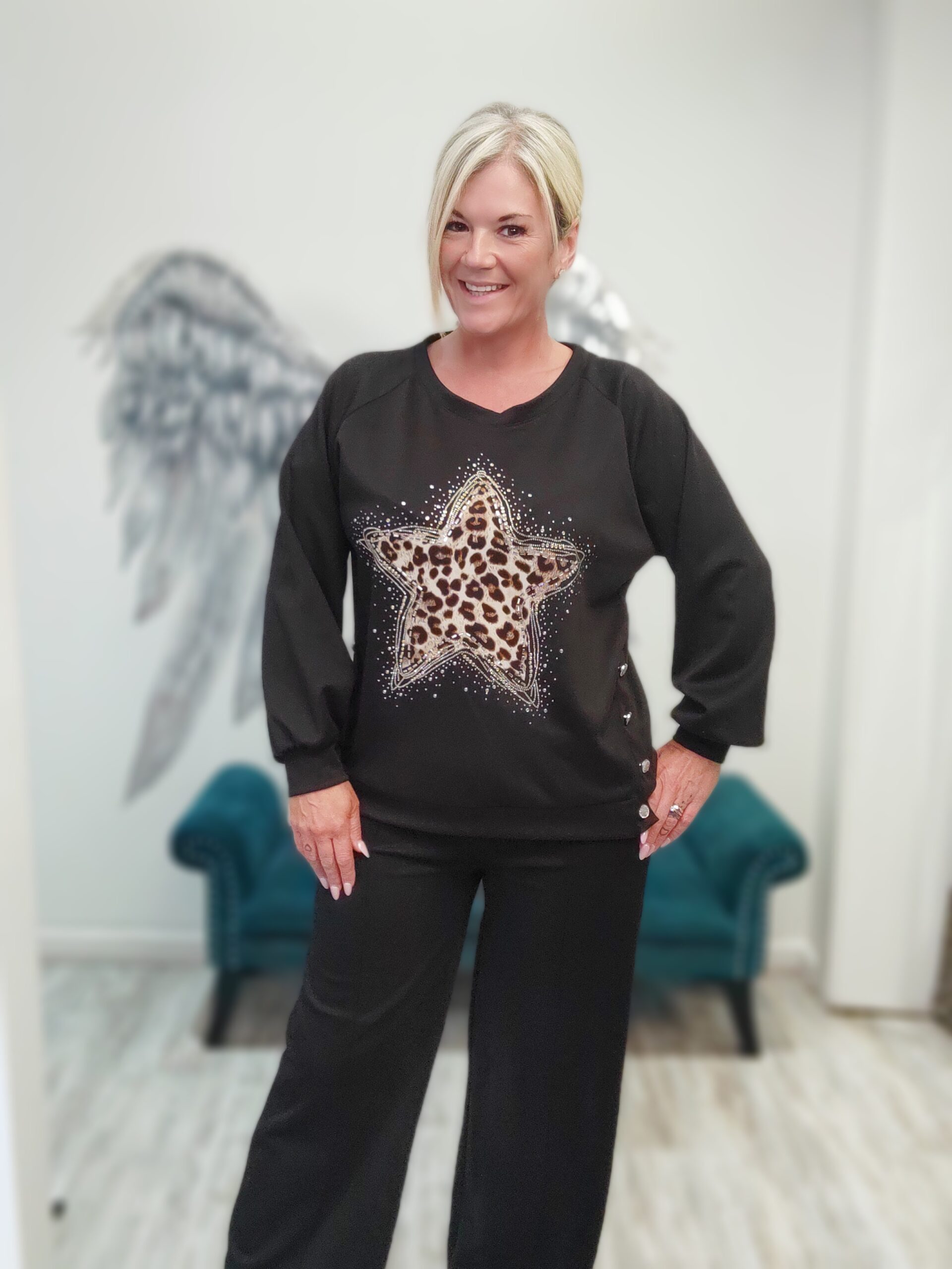 Gorgeous jumper sweater with button up detail sides and a beautiful star animal print with diamante detailing
