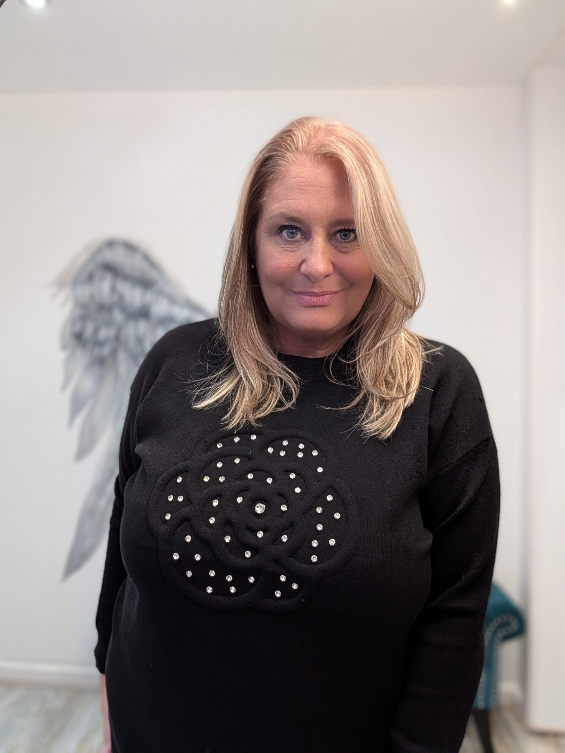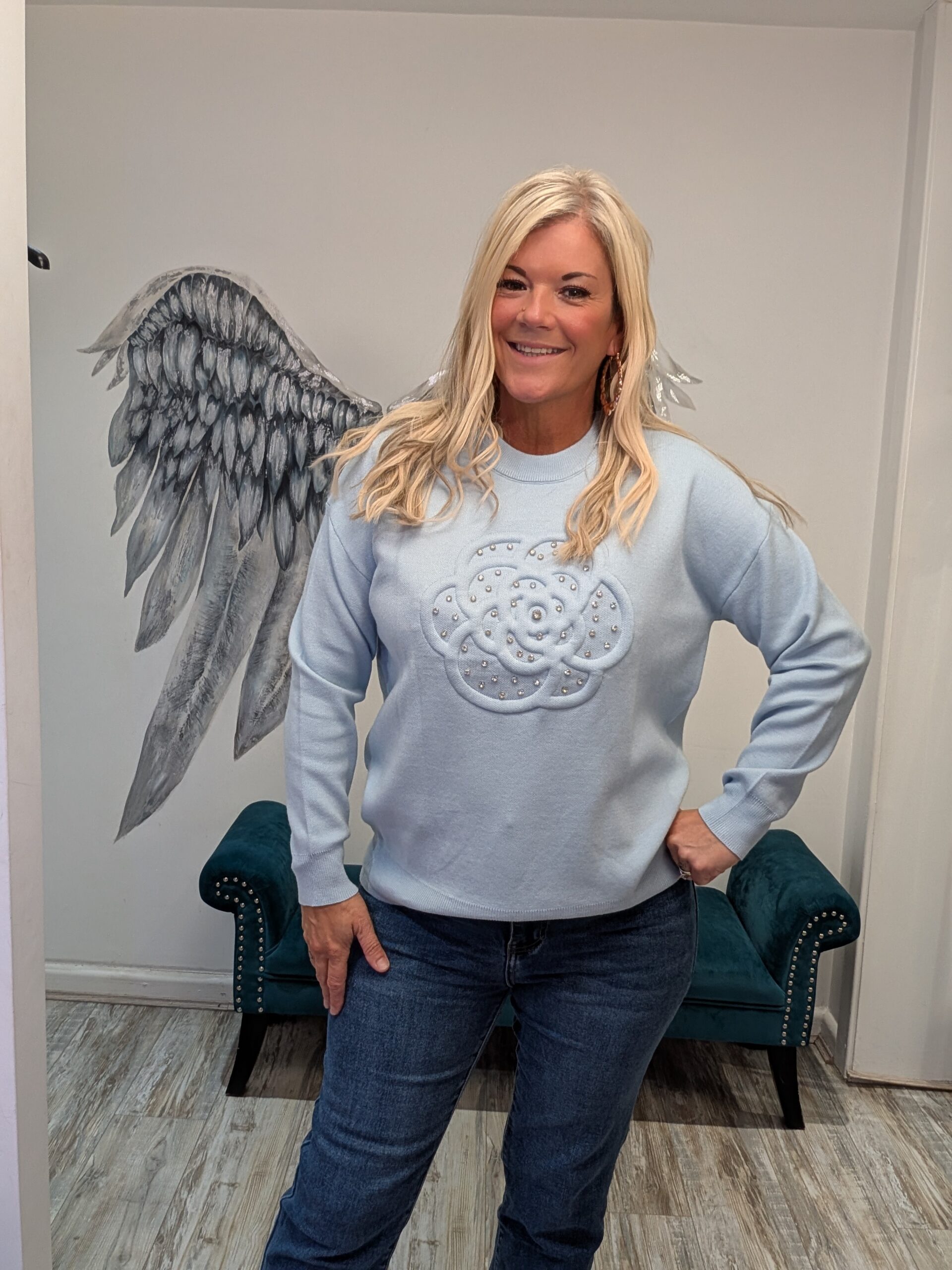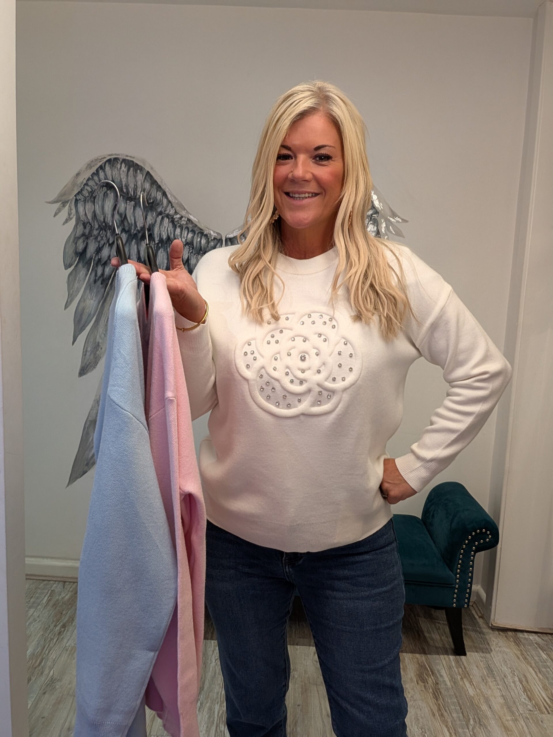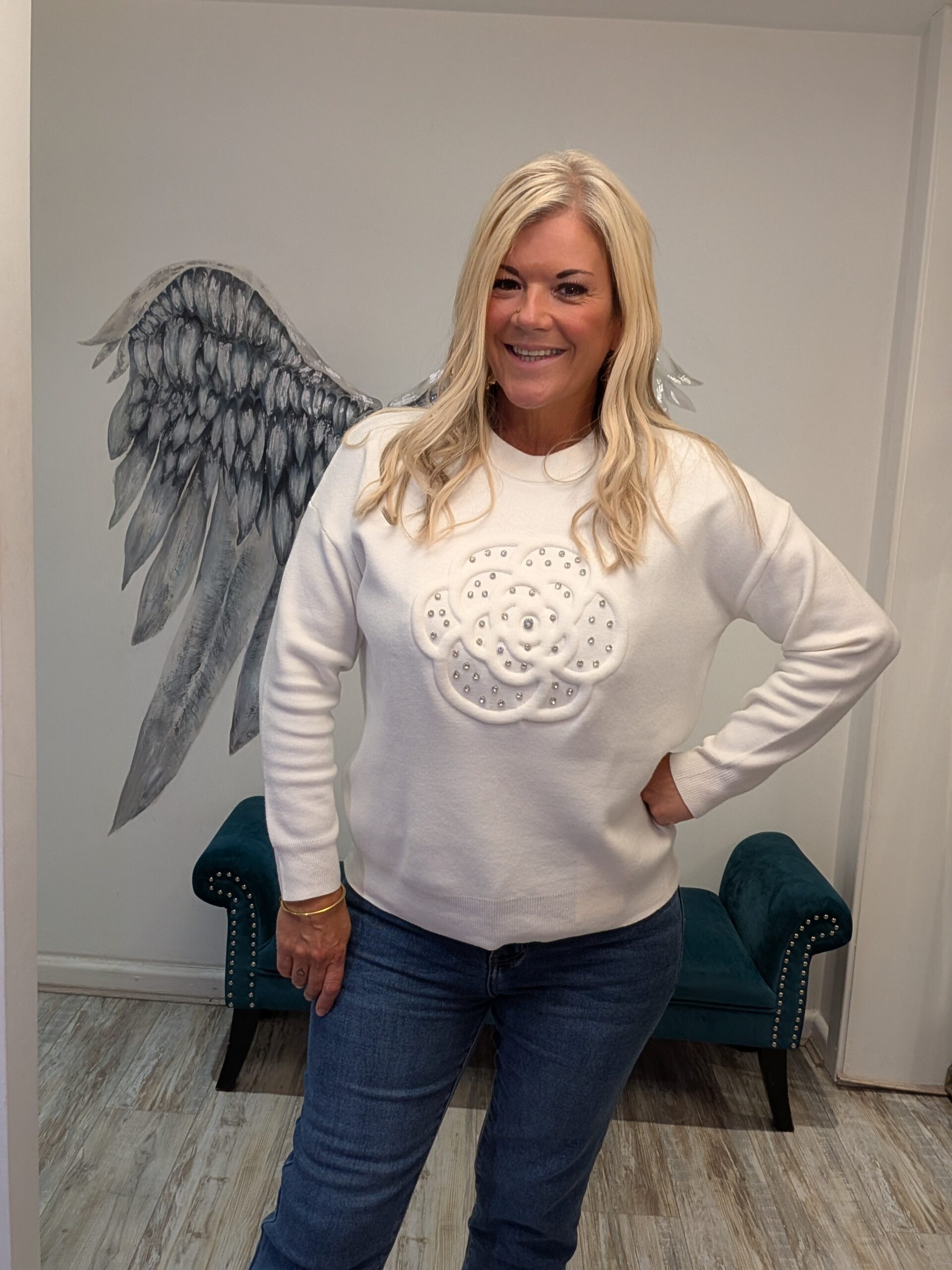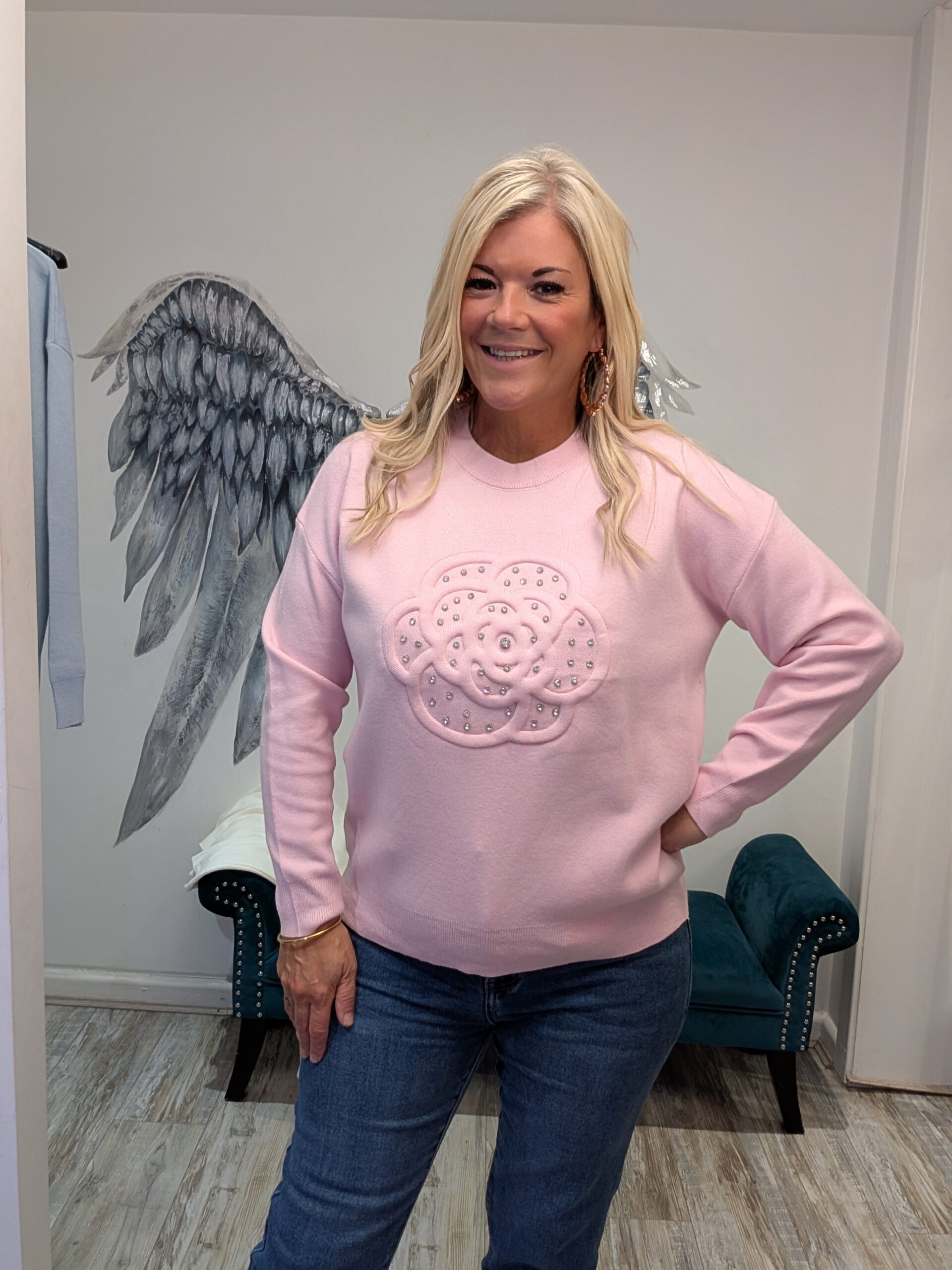 Gorgeous knit jumper with flower detail and diamantes x