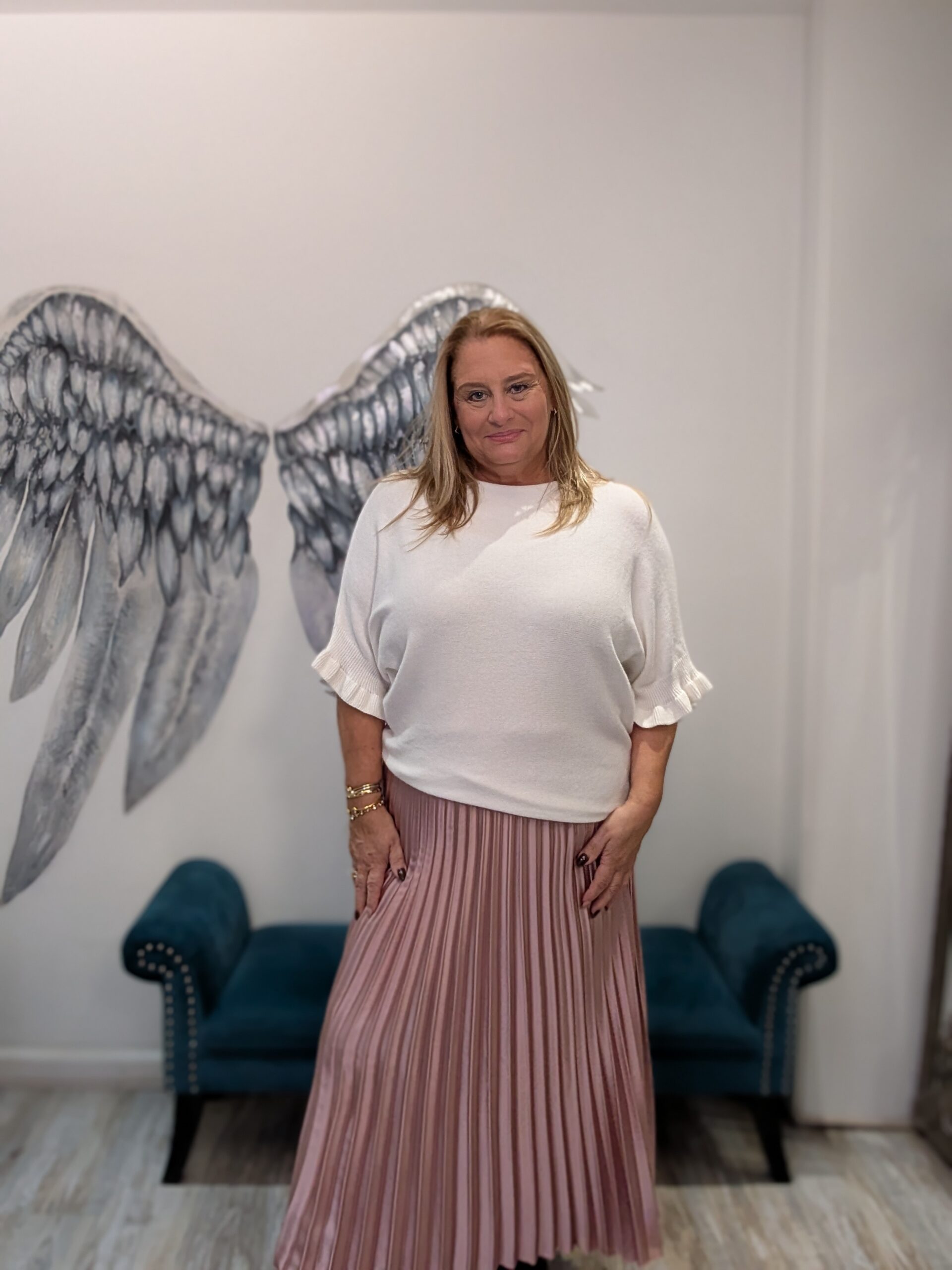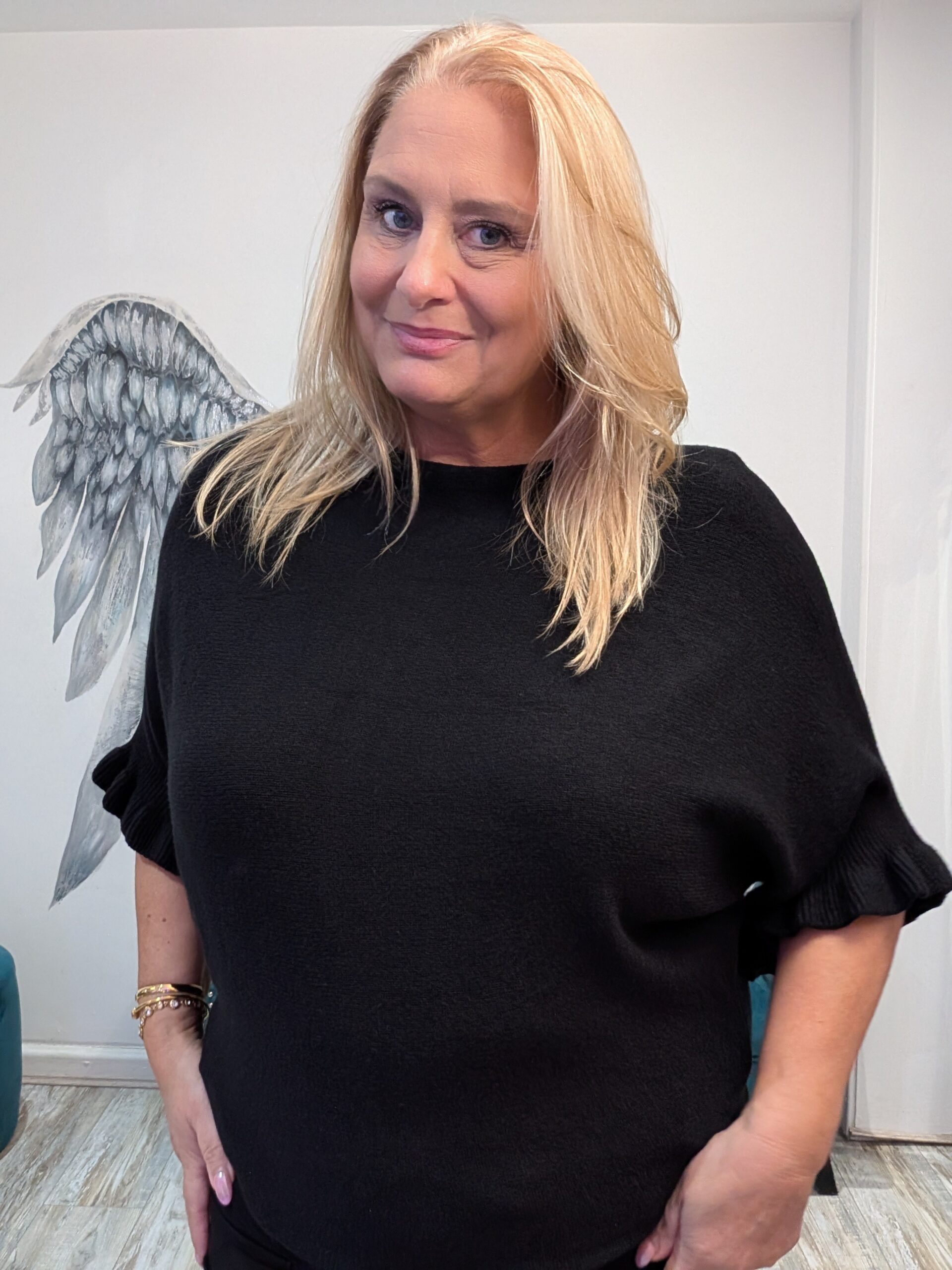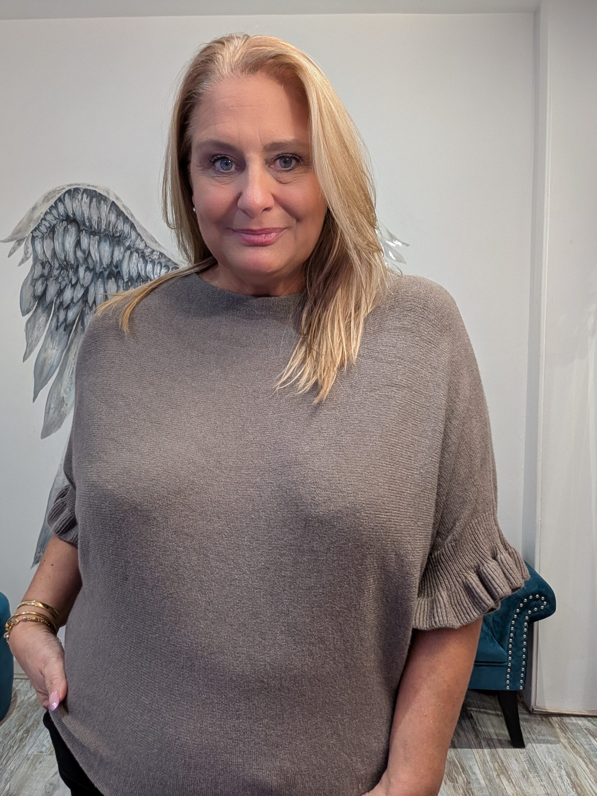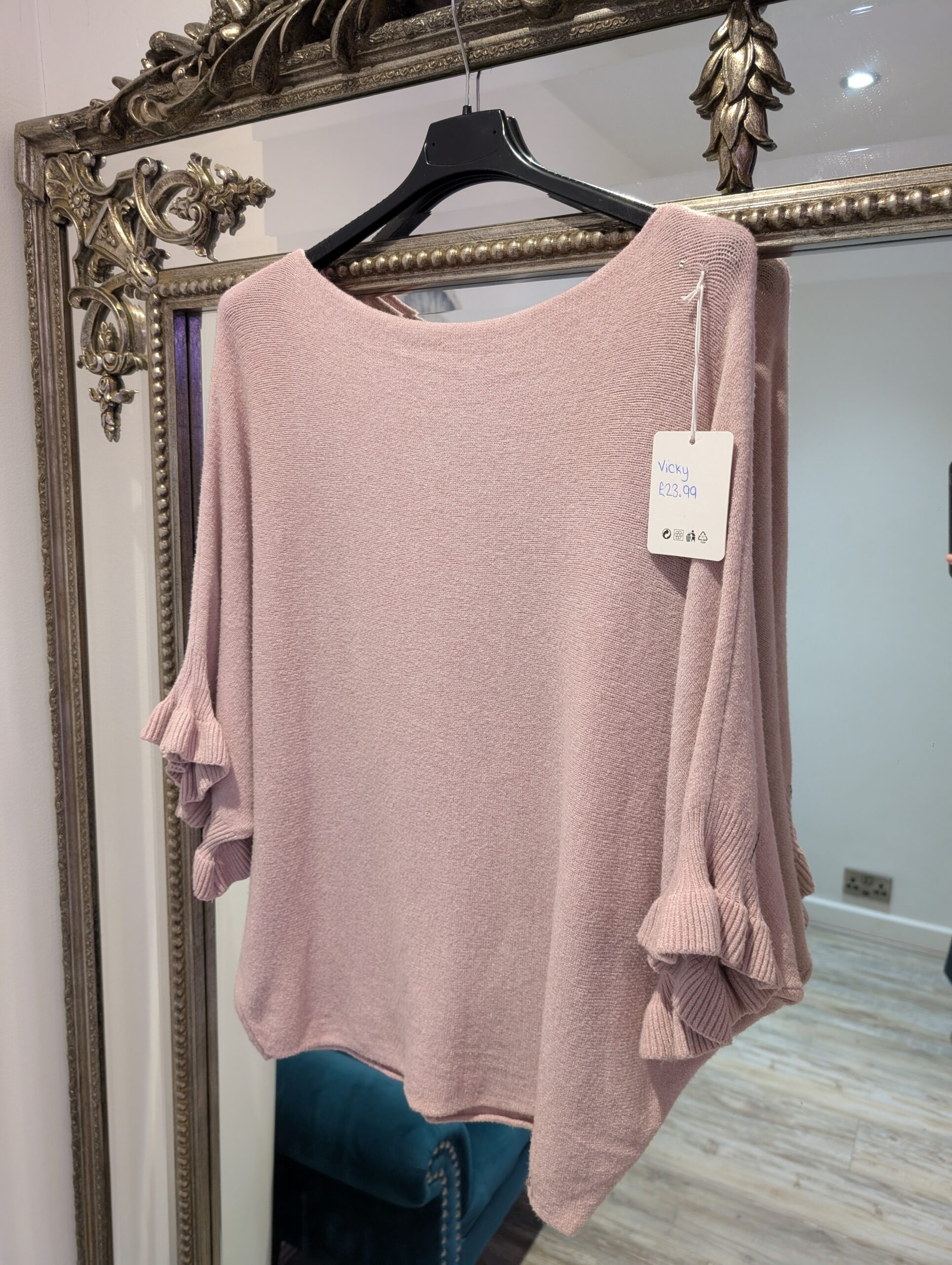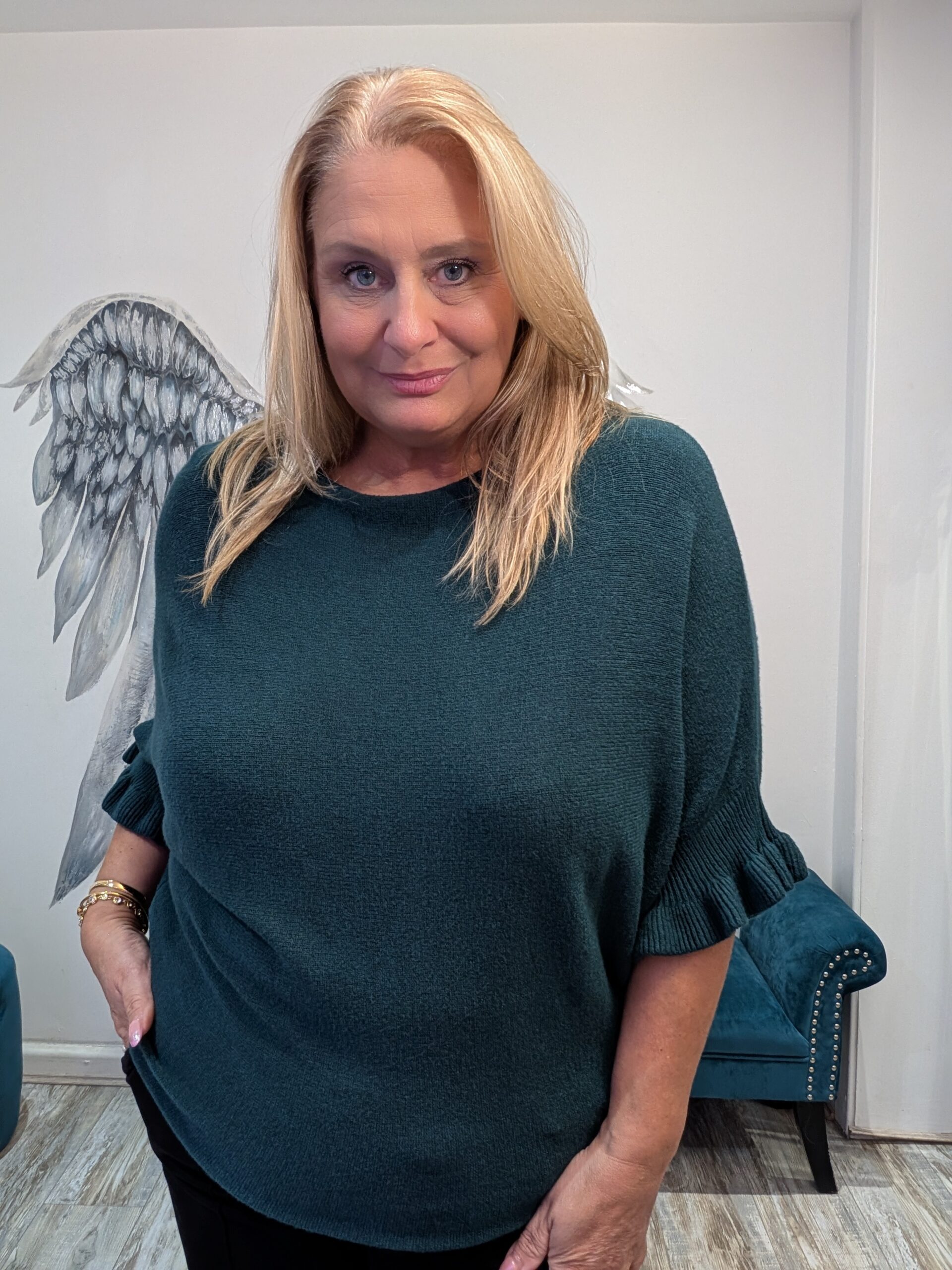Gorgeous soft fine knit jumper with frill detail on sleeve, omes in many colours so perfect for you to choose!