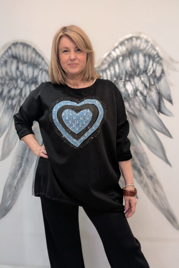 Neve Lightweight Sweatshirt Top Heart Motif – Available in 3 Colours (One size fits 12-20)