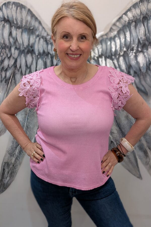 Hayley Lace Sleeve T-Shirt (One Size Fits 12 to 16)
