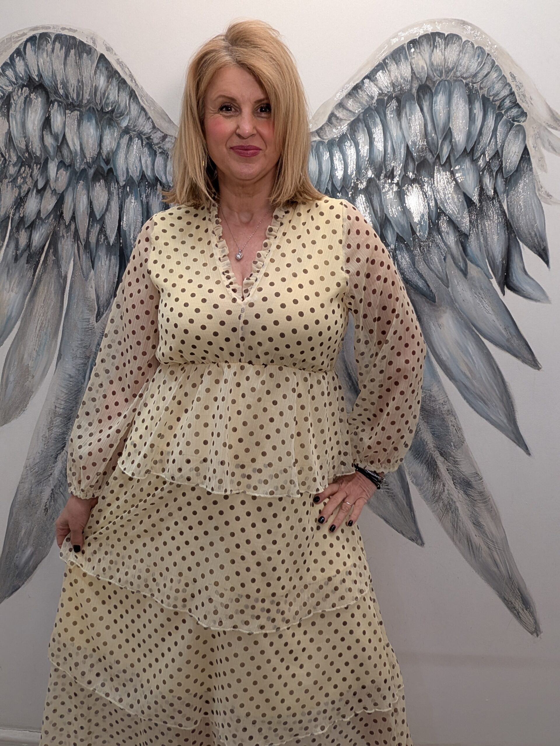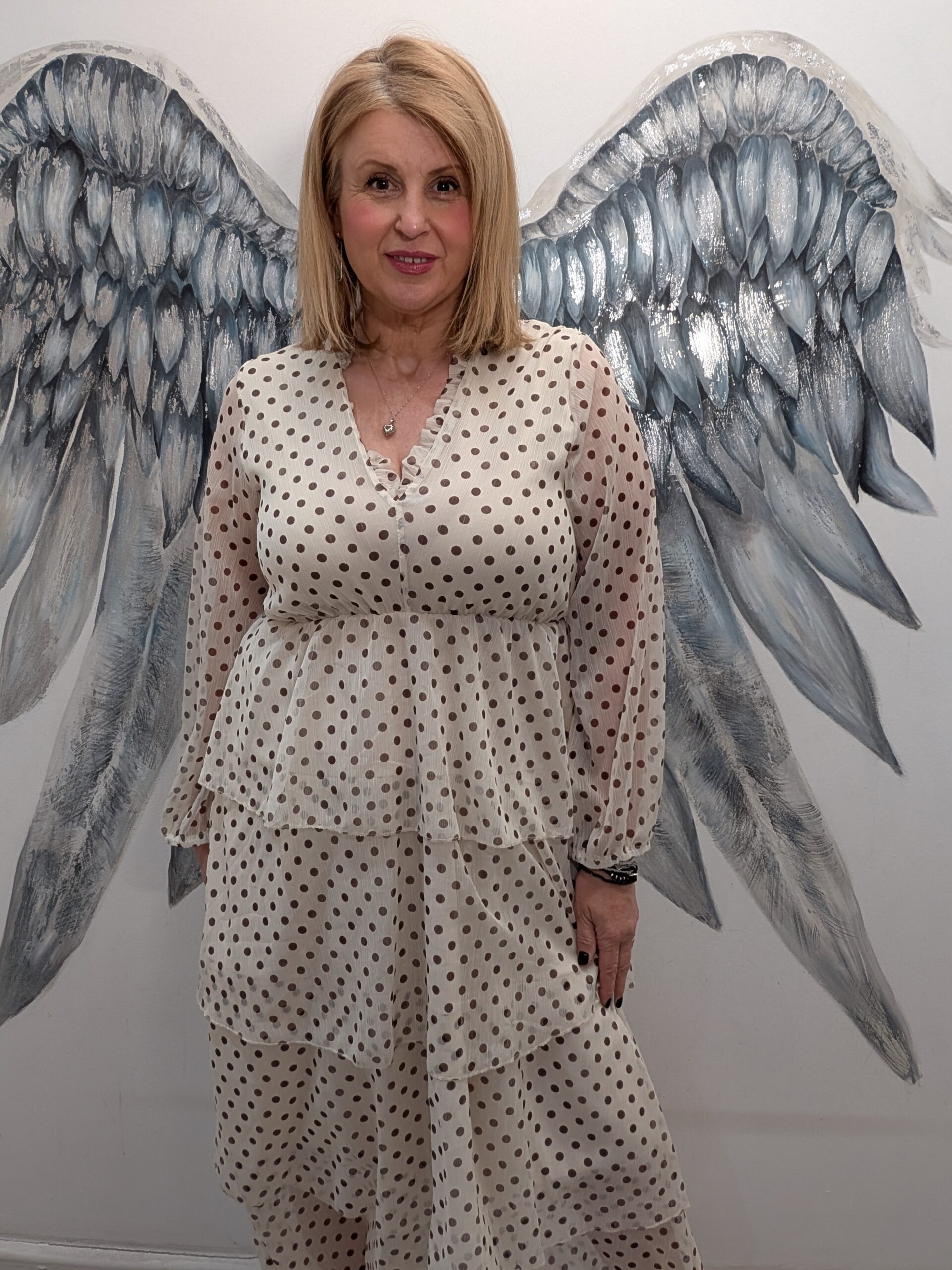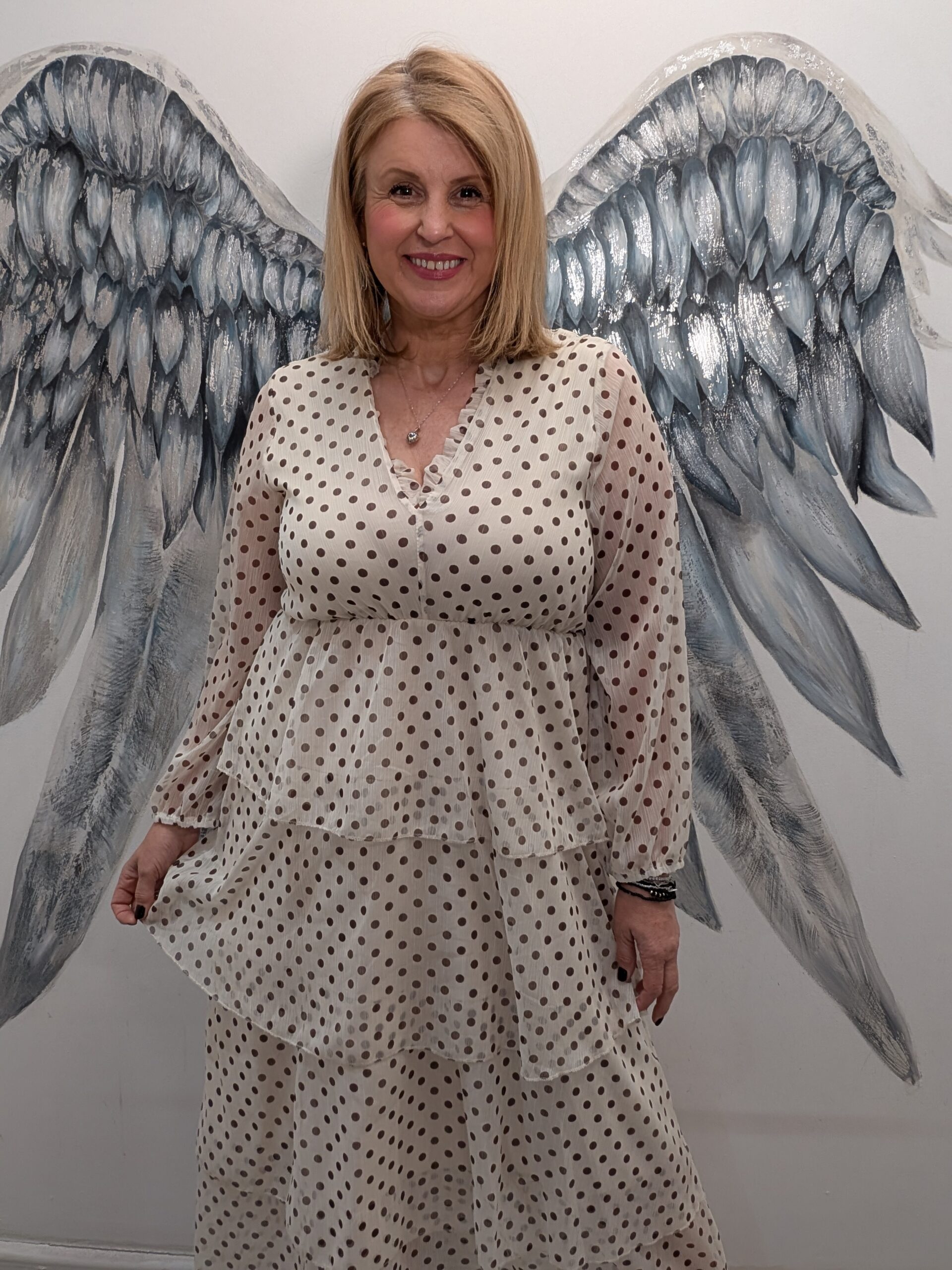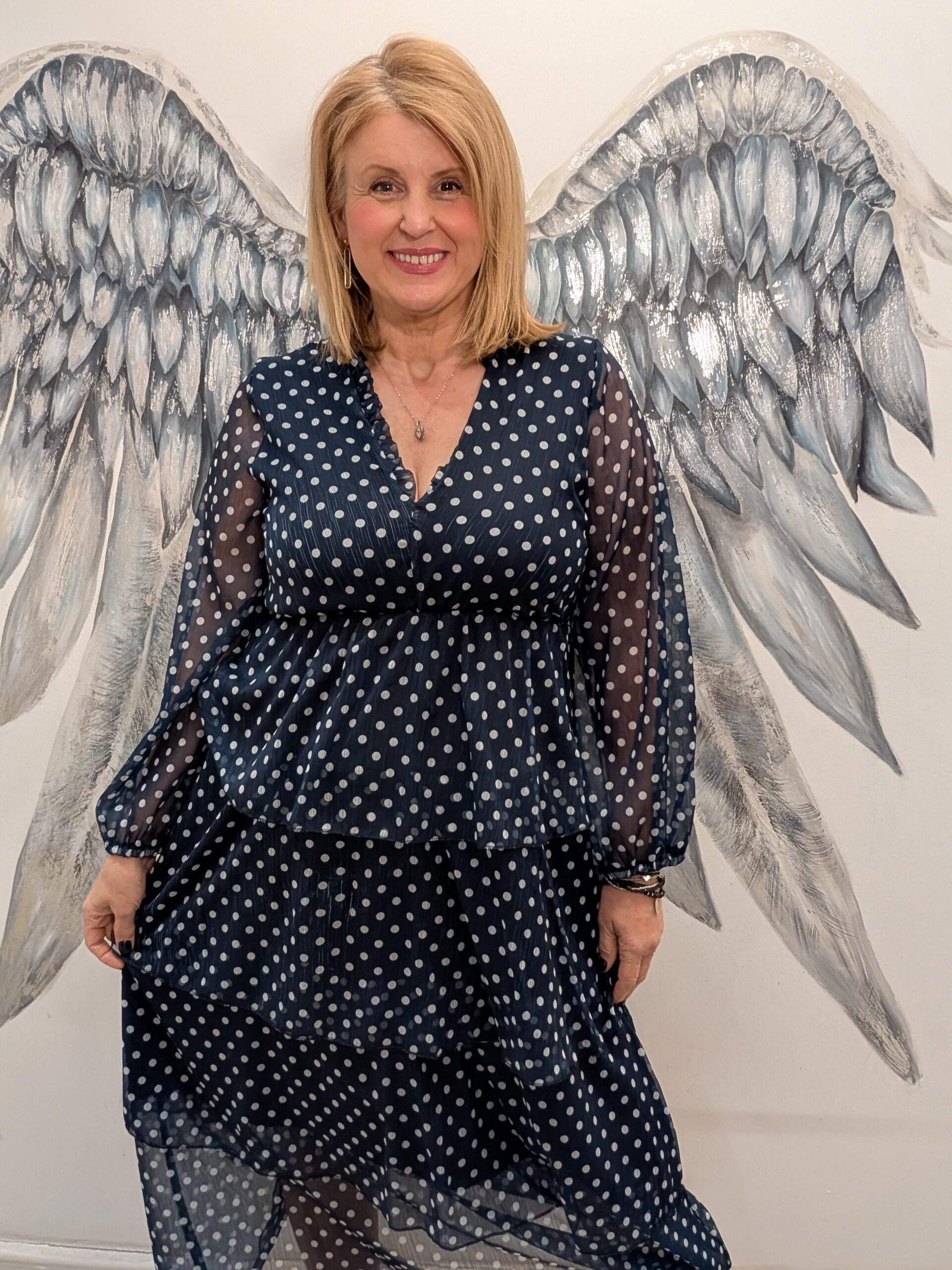 This dress is will make you feel fabulous with the on trend spots and super flattering tiered skirt.