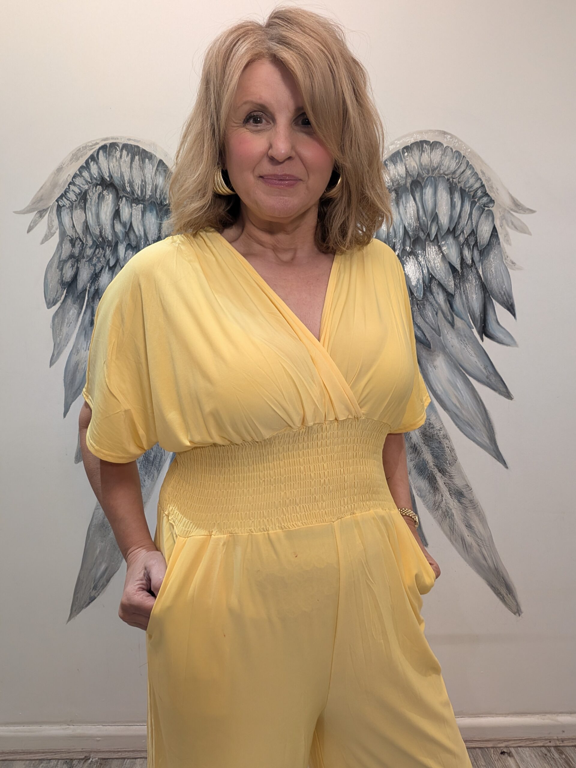Palma V Neck Slinky Magic Jumpsuit, Comfy elasticated waist, short sleeves. So easy to wear & it has pockets