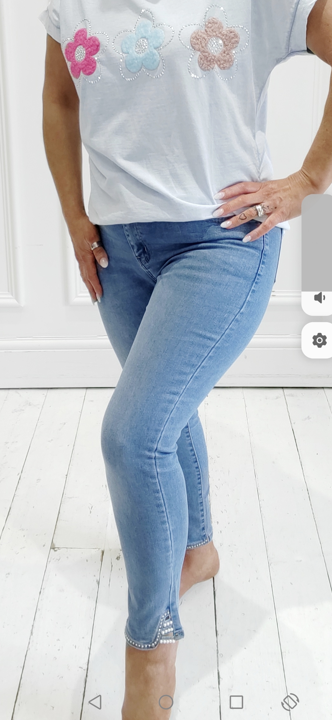 Gorgeous jeans with cute sparkle and pearl detail around the ankle x