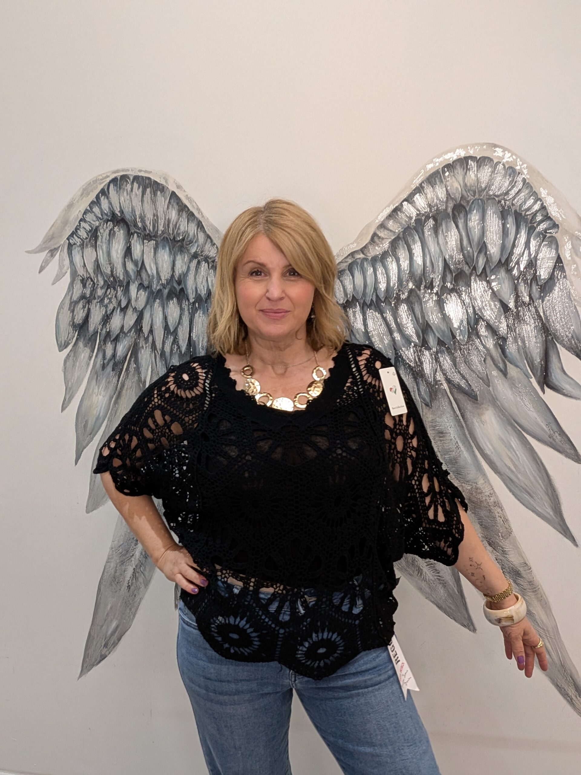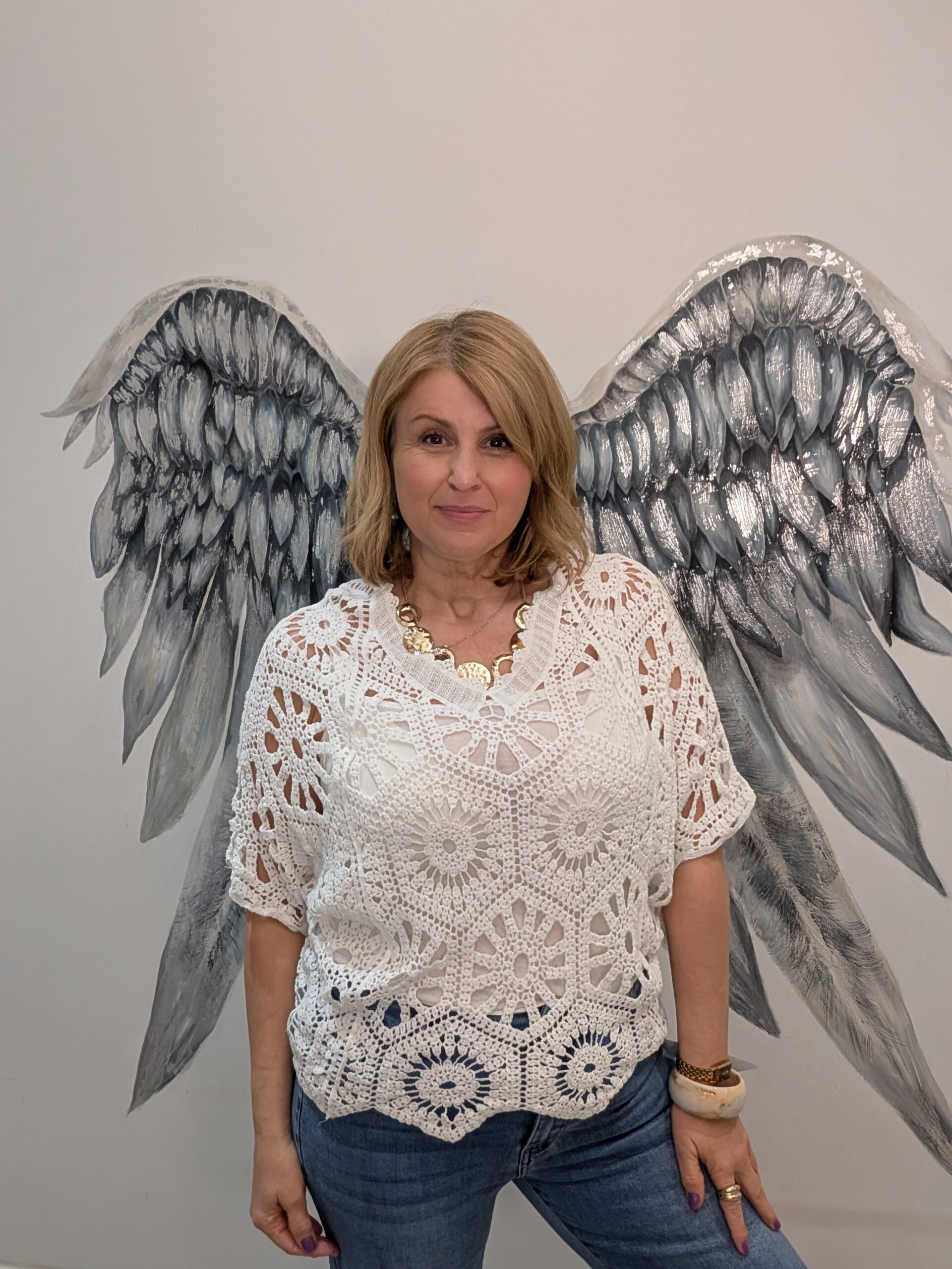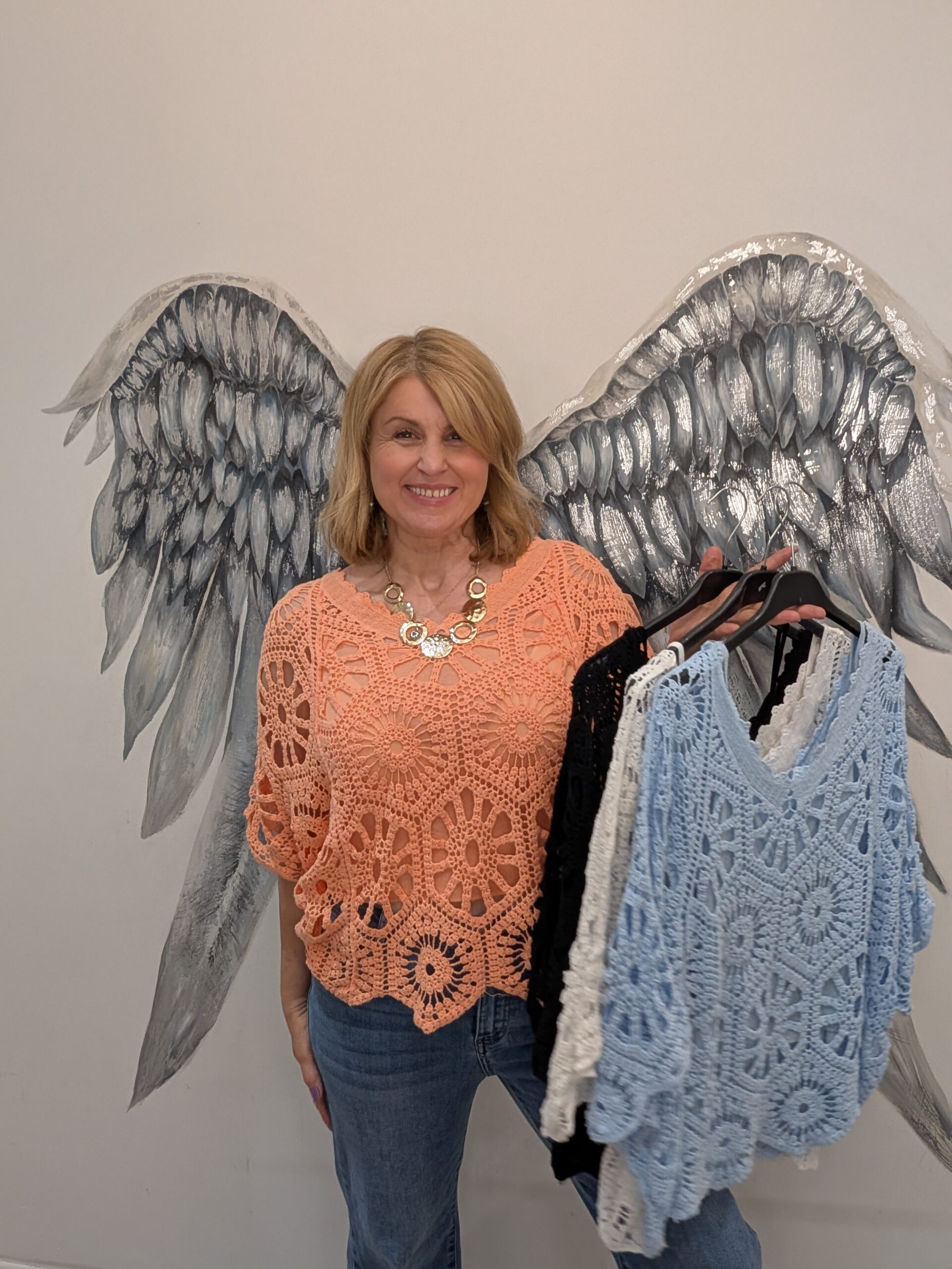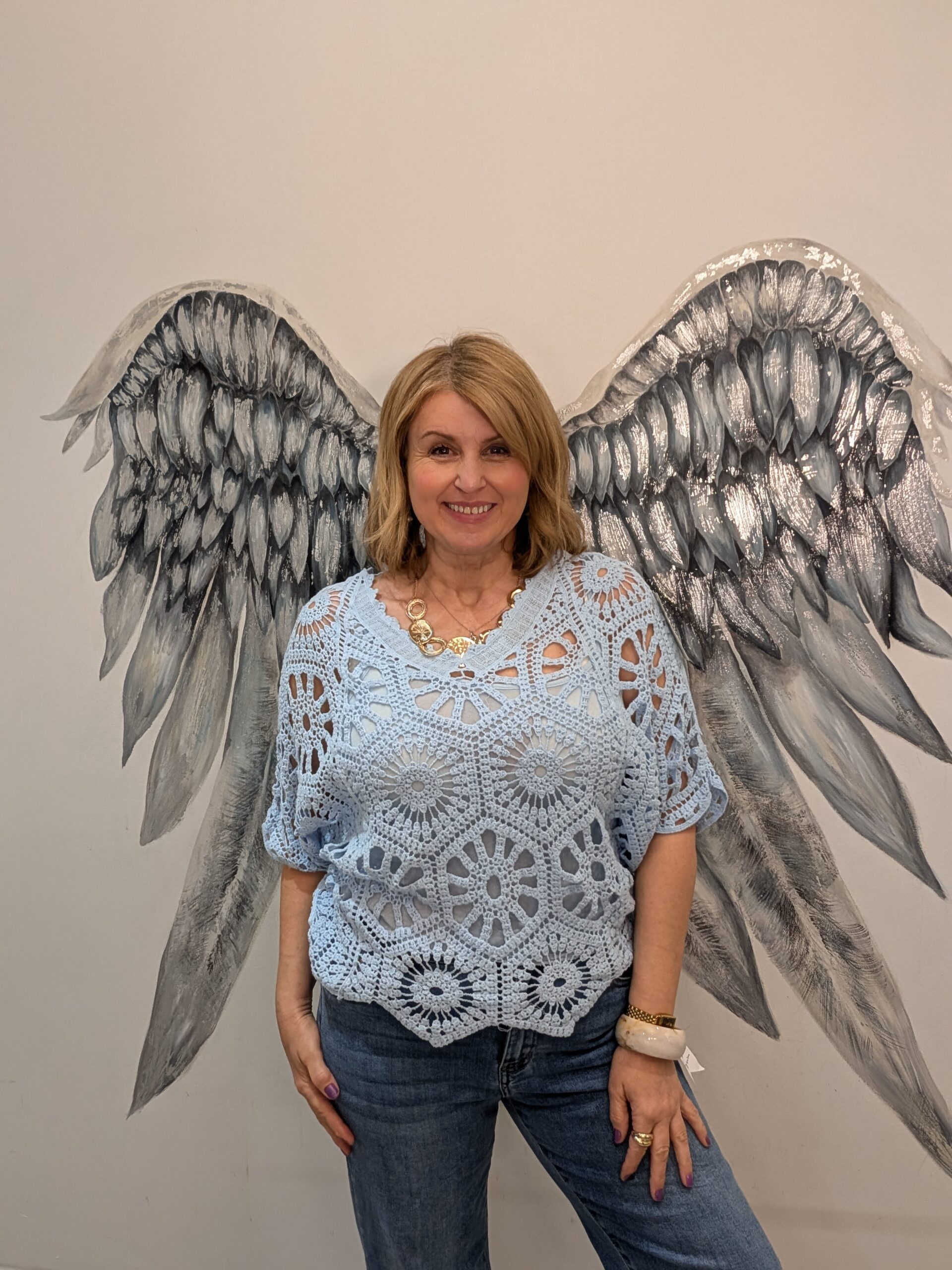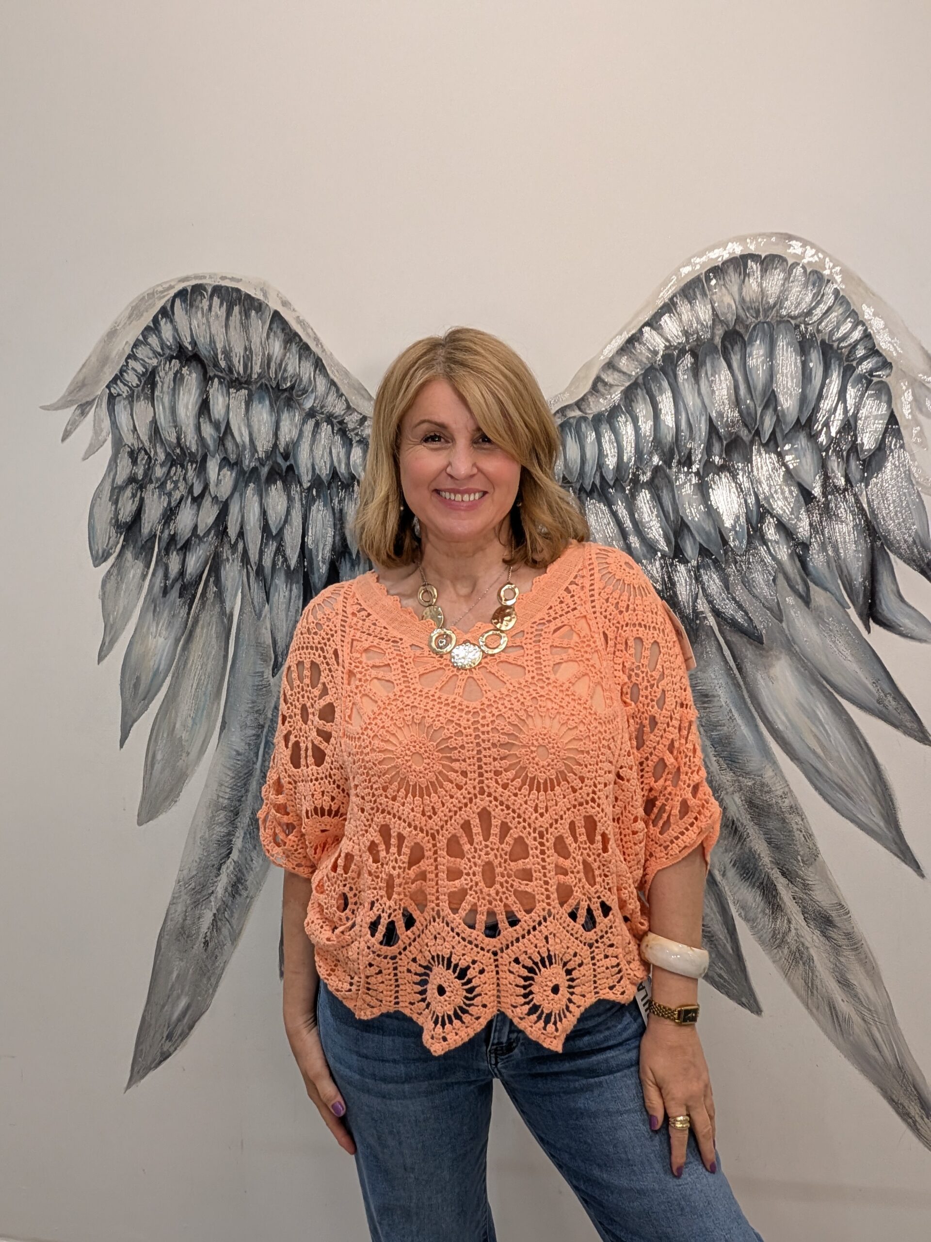 Gorgeous crochet top with matching colour vest underneath. Perfect for the spring/summer with jeans, trousers or shorts