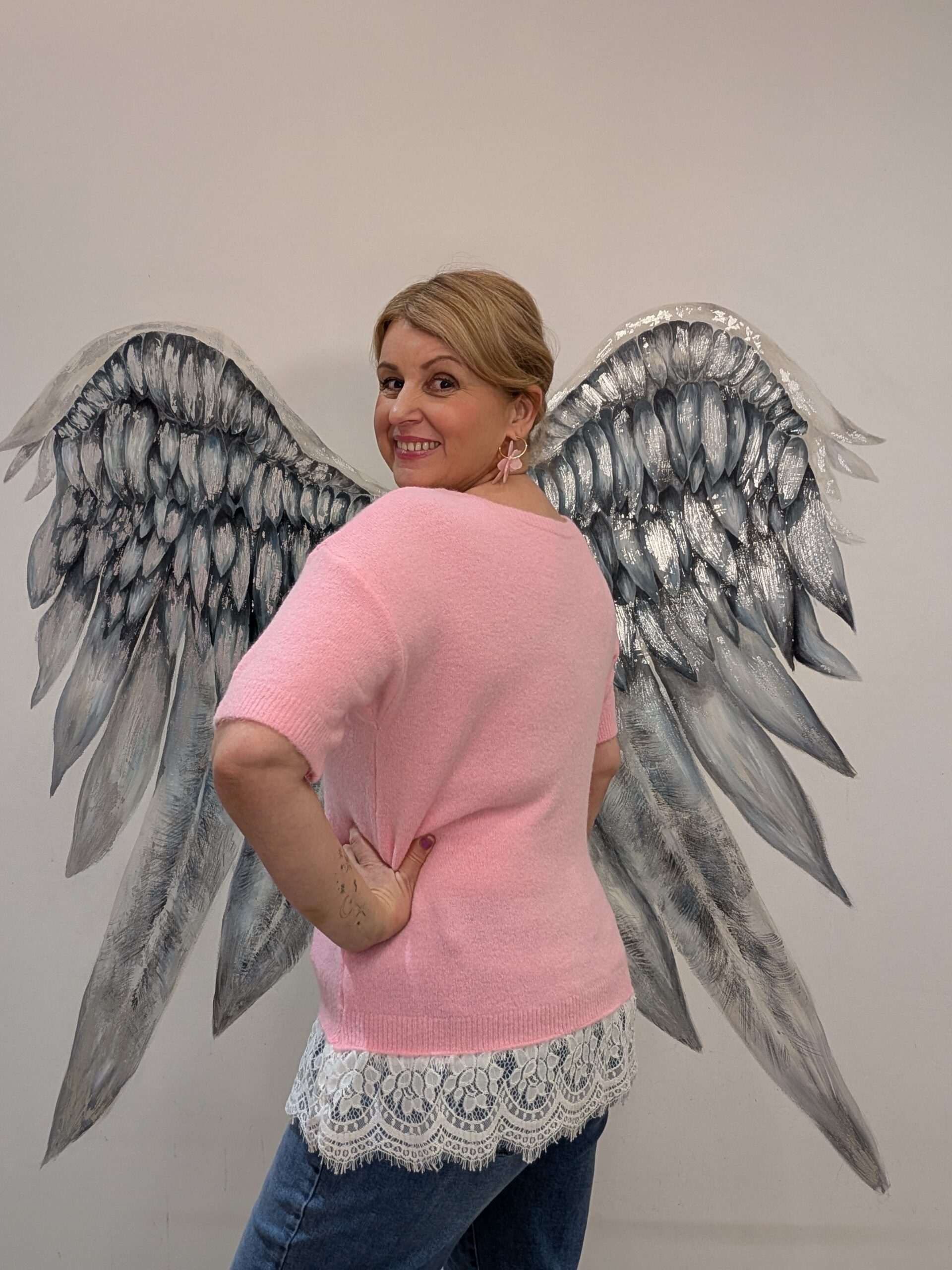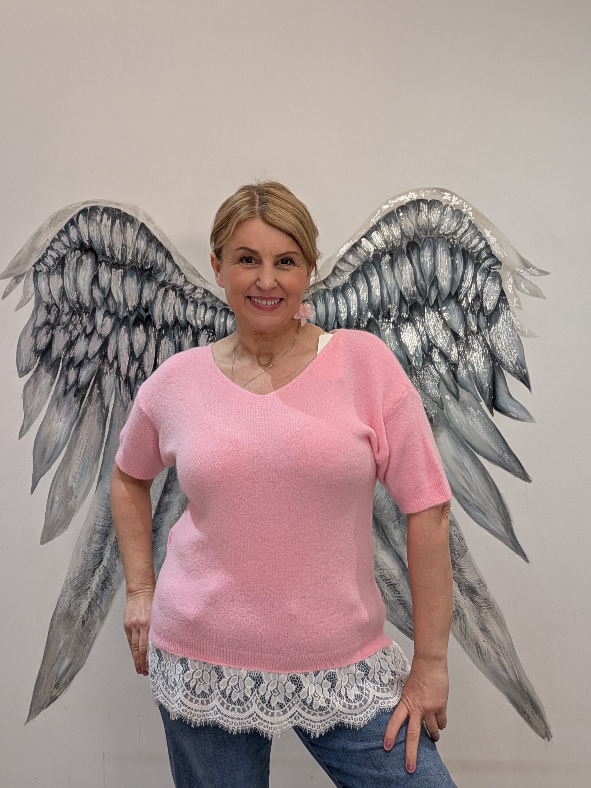 Verity short sleeved v neck jumper with lace trim, perfect to see you into those spring months